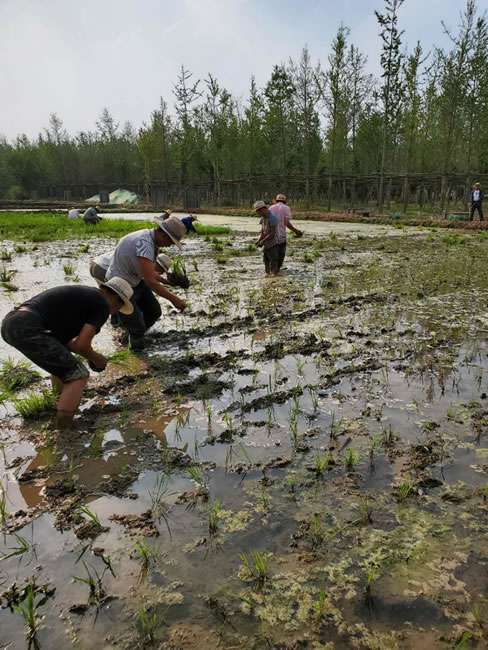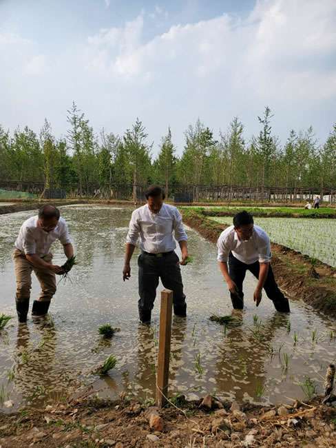 日前,米兰网页版-米兰(中国)董事长梁雨、总裁谢俊率集团高级管理人员来到位于北京西四环外的锦绣大地生态园,在景色迷人的玉泉山山下,同志们挽起裤脚跃进田里,生态园农业技术员一边弓腰示范,一边讲解道“插秧是个技术活,将秧苗窝在虎口处,既要轻又要稳,用巧劲儿将秧苗抛在泥里,不能抛得太深,又要确保植保灌溉时,秧苗不漂浮在水面上。”
